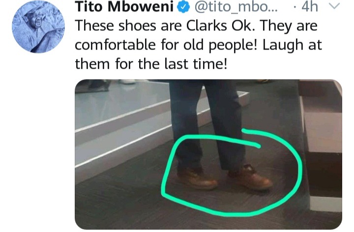 Tito mboweni showcased his humorous side when he retorted that his shoes were actually designer and 'comfortable for old people.' these shoes are clarks ok.